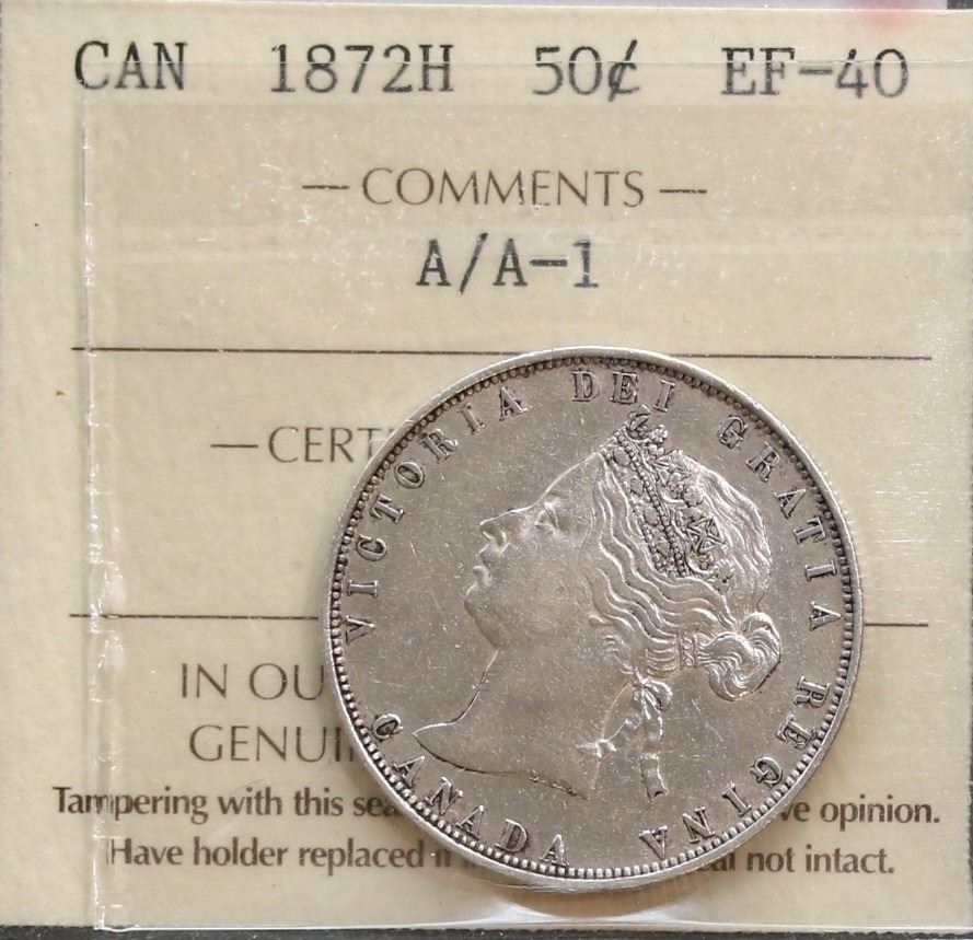 1872H 50¢ A/A-1 ICCS Extra Fine-40. Interesting variation.