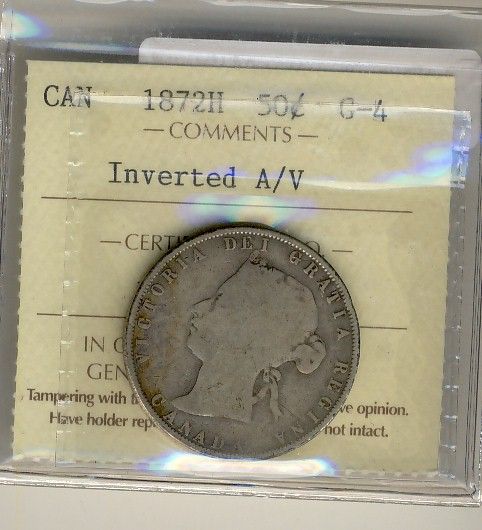 1872H 50 Cents, ICCS G4; A/V. Scarce variety.