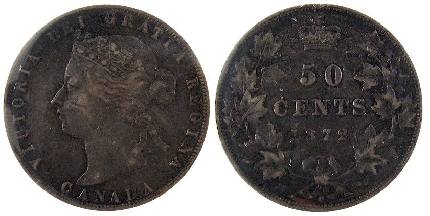 1872H 50 Cents, ICCS VF20; A/V. Scarce in this condition.