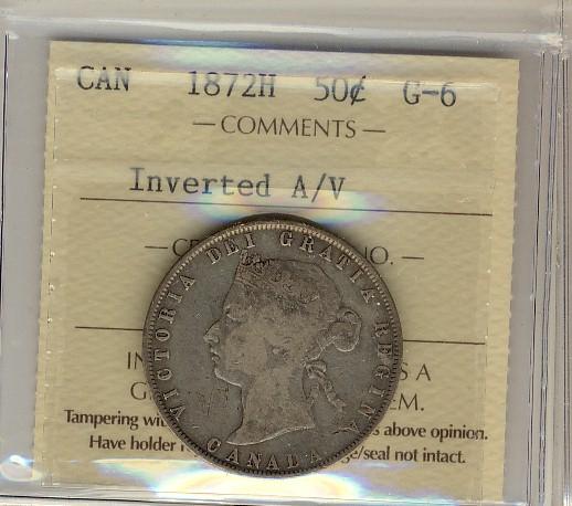 1872H 50¢ Inverted A/V ICCS G6