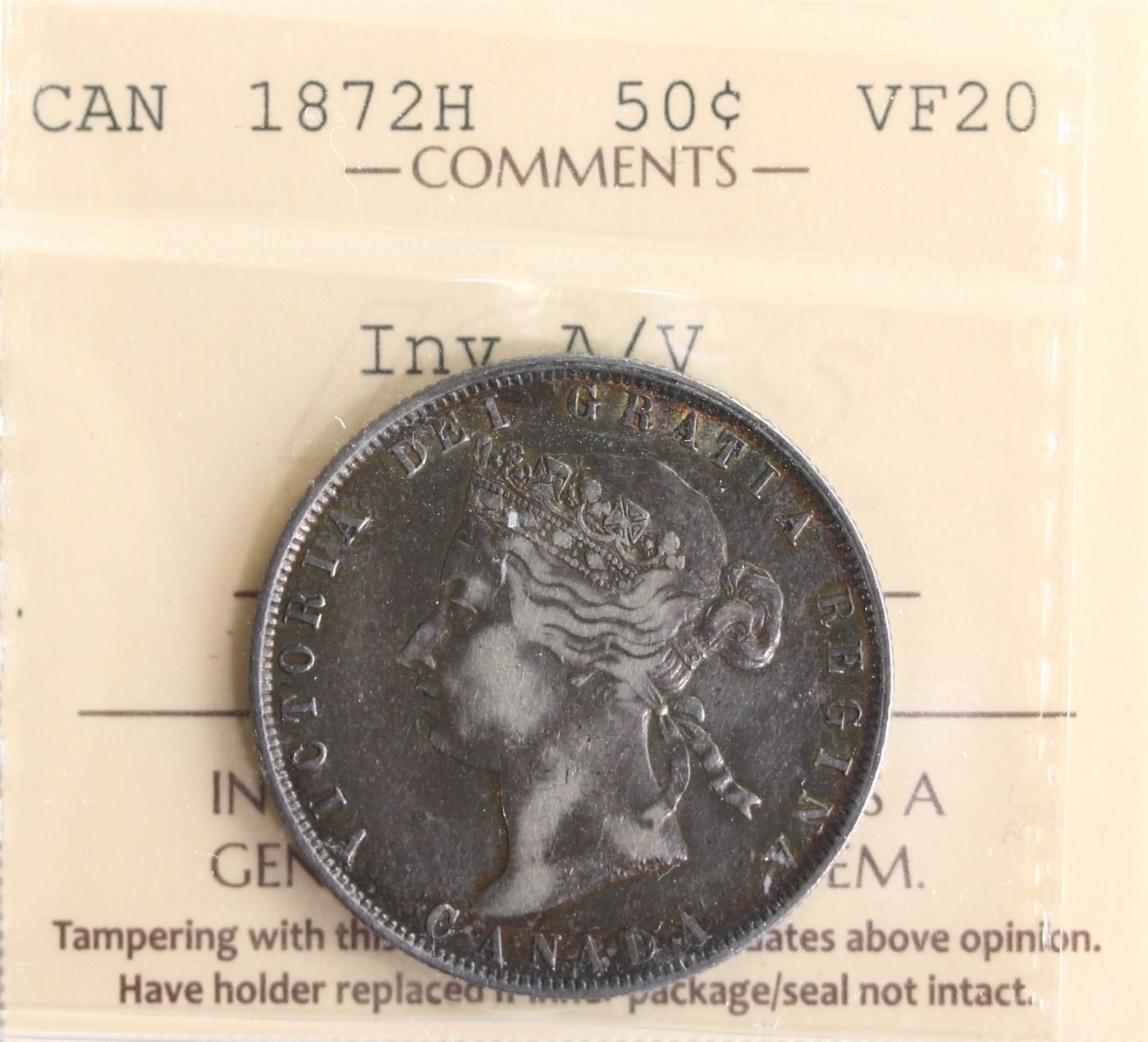 1872H 50¢ "Inverted A/V" ICCS Very Fine-20. A nice example.