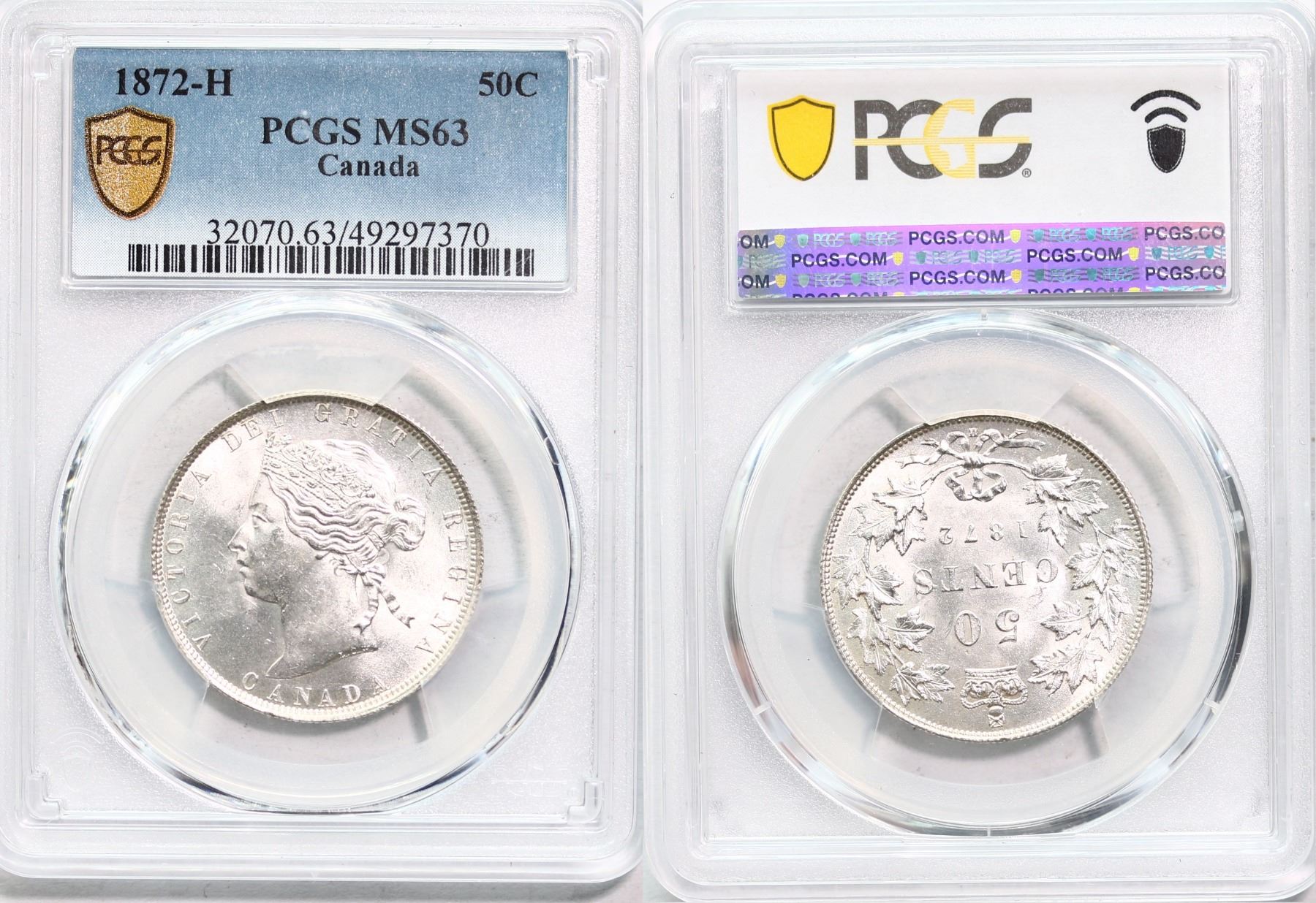 1872H 50¢ PCGS Choice Mint State-63 This is a Pristine issue with great eye appeal and superb fields. A stunning issue. Among the nicest blast white example we have ever offered! Worth a premium bid.