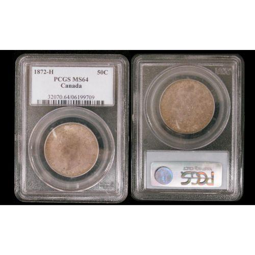 1872H 50¢ PCGS MS64. An absolute gem Victiorian example with a darkish golden/brown toning spread evenly on both the reverse and obverse with lots of underlying lustre. A Must See