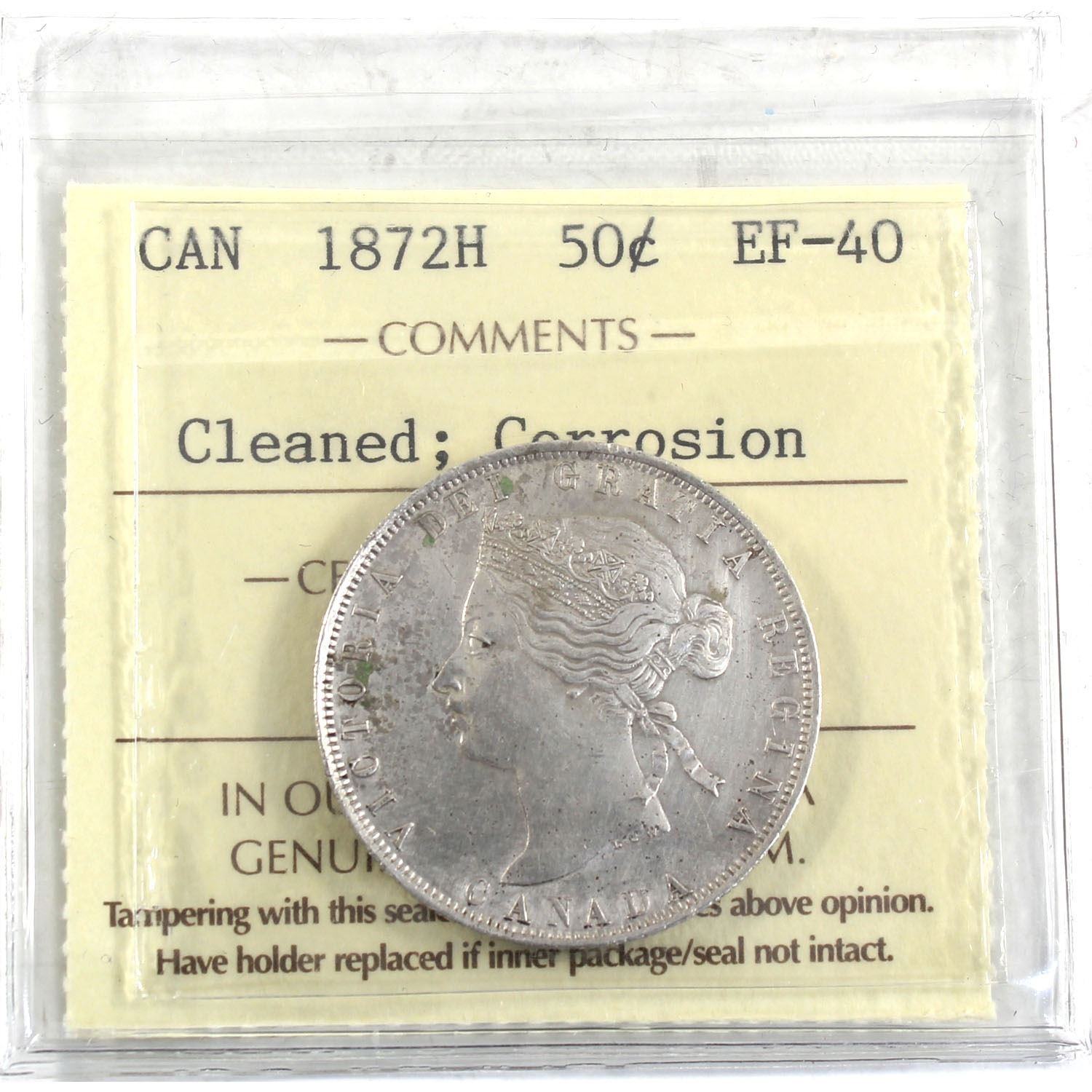 1872H Canada 50-cent ICCS Certified EF-40 (Cleaned, Corrosion).