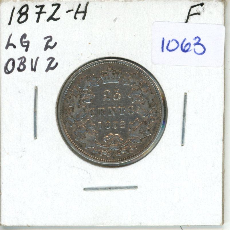 1872H Canadian 25 Cent Coin - Large 2, OBV 2, F