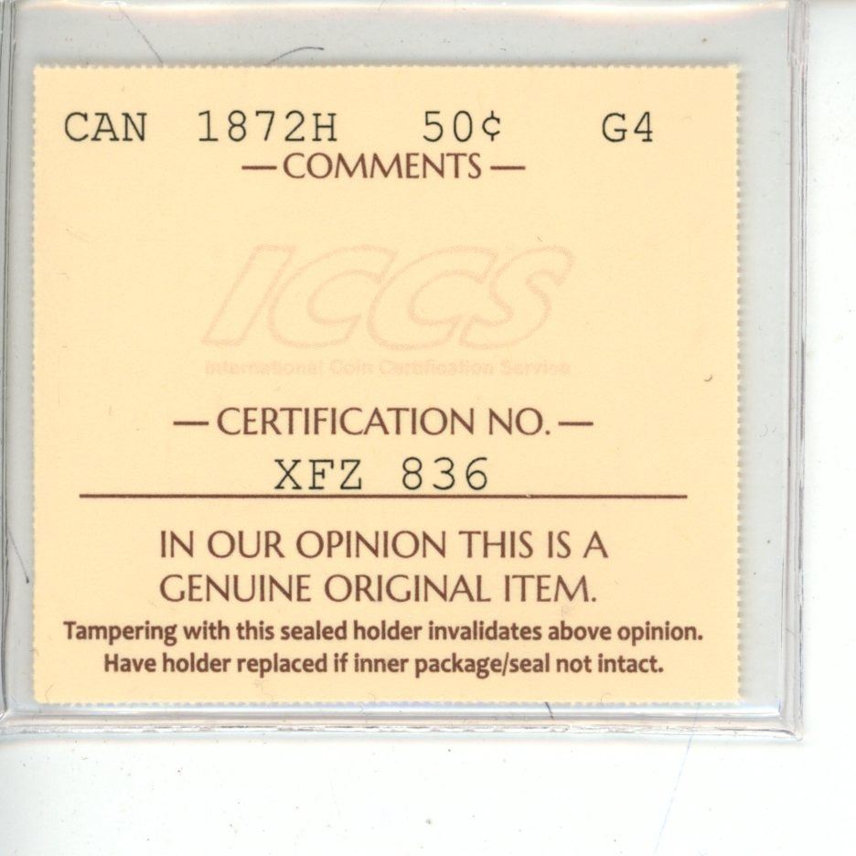 1872H ICCS Graded - Canadian Fifty Cent - G4