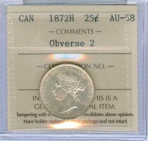 1872H Obv.#2 25¢ ICCS AU58, Brilliant! Looks much better.