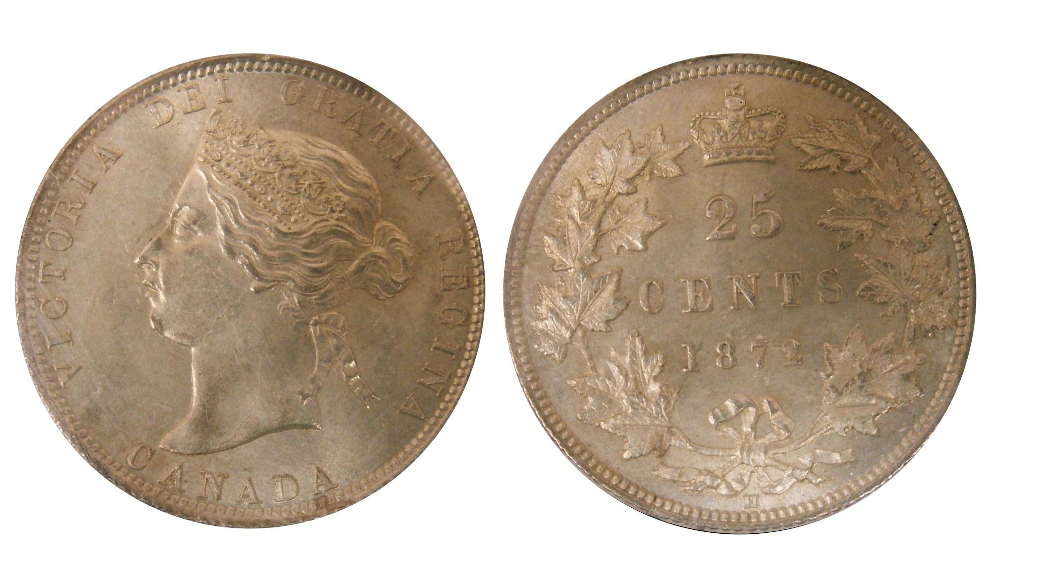 1872H Obv.2 25¢ ICCS MS65. A superbly attractive example with light gold finish and nest to perfect reverse. Tied for finest known.