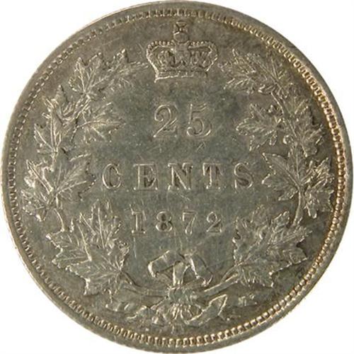 Canada Twenty-Five Cents 1872H Obverse 2 ICCS VF-30. Pale toned