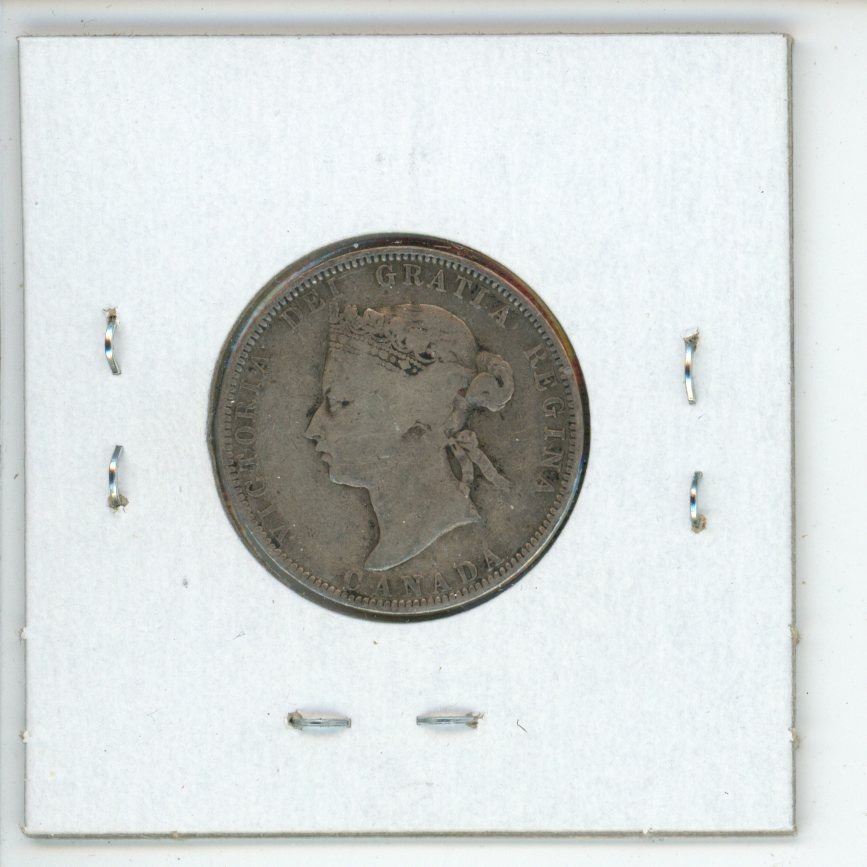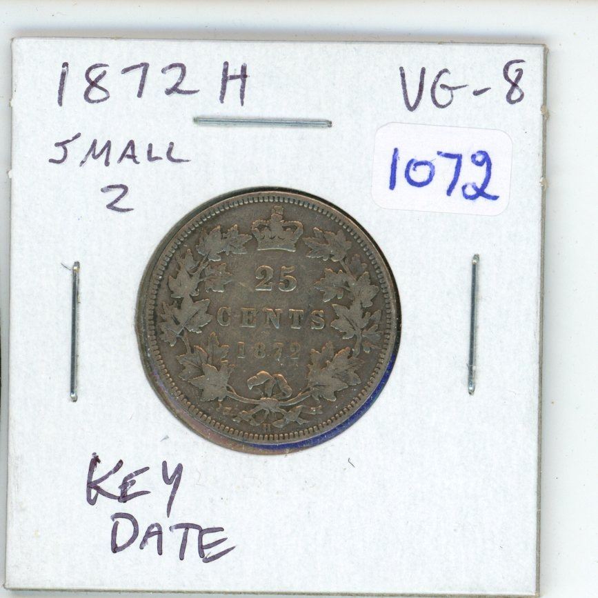 1872H Small 2 Canadian Victorian Silver 25 Cents. Heaton Mint. Key Date. VG-8.