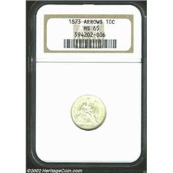 1873 10C Arrows MS65 NGC. First year of issue and an important condition rarity for the advanced typ