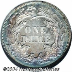 <table><tr><td><table><tr><td>1873 10C Arrows PR65 NGC. A beautifully toned Gem that has pleasing swaths of gold, rose, electric-blue, and blue-green patina. A nicely struck Dime with a few minor hairlines. The fields impart a moderately reflective appearance. Proofs of the Arrows and Legend type were struck for only two years, with a combined mintage of only 1,500 pieces. Population: 13 in 65, 11 finer (3/04). <BR><BR><B>Important notice:</B> Heritage usually auctions material at the rate of 200-250 lots per hour. On some occasions eBay Live bid software or the Internet may not be able to keep up with the pace of the auction. We recommend placing a realistic absentee bid now as insurance to avoid disappointment. Occasionally the auctioneer may eliminate or reject an eBay Live bid, and the auctioneer may also reopen a lot after the close of the eBay live bidding (usually because we missed an audience bid), and may reject your bid even if it shows you as the winning bidder. By bidding via eBay Live, you agree that Heritage may award the lot to another bidder at its sole discretion under the circumstances described above or any other reasonable circumstances. Since eBay bids are not shown to us until we open the lot on the floor, we treat those bids just like floor bids. In most cases the floor responds before the eBay bid is presented to us, due to Internet lag time, so for consistency we have made it a policy that floor bids are always considered first over tie eBay live bids. Also please note that all Heritage lots purchased through eBay Live carry a 20% Buyer's Premium. Please make sure you read the Terms and Conditions before you bid. <BR><BR><B>IMPORTANT ANNOUNCEMENT ABOUT RESERVES:</B> Heritage now divulges all reserves on its web site 7 days before every auction. If you want to know whether the reserve on this lot has been met, and if not, what the reserve amount is, please visit this lot page on the HeritageCoin.com web site, or email: bid@HeritageGalleries.com </span></font></td></tr></table></td></tr></table>
