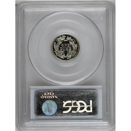 <B>1873<10C> No Arrows PR64 Cameo PCGS.</B></I> The radiant devices are penetratingly struck, and toning is virtually absent. A few pinpoint obverse planchet flaws are of mint origin. The <I>Guide Book</B></I> reports 1,100 proofs were struck, but third party populations suggest a much smaller net mintage; Breen states "some proofs melted July 10, 1873." Population: 9 in 64 Cameo, 6 finer (4/06).