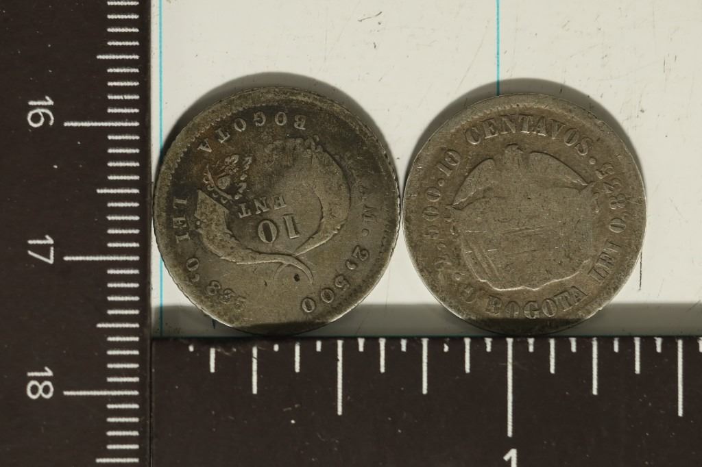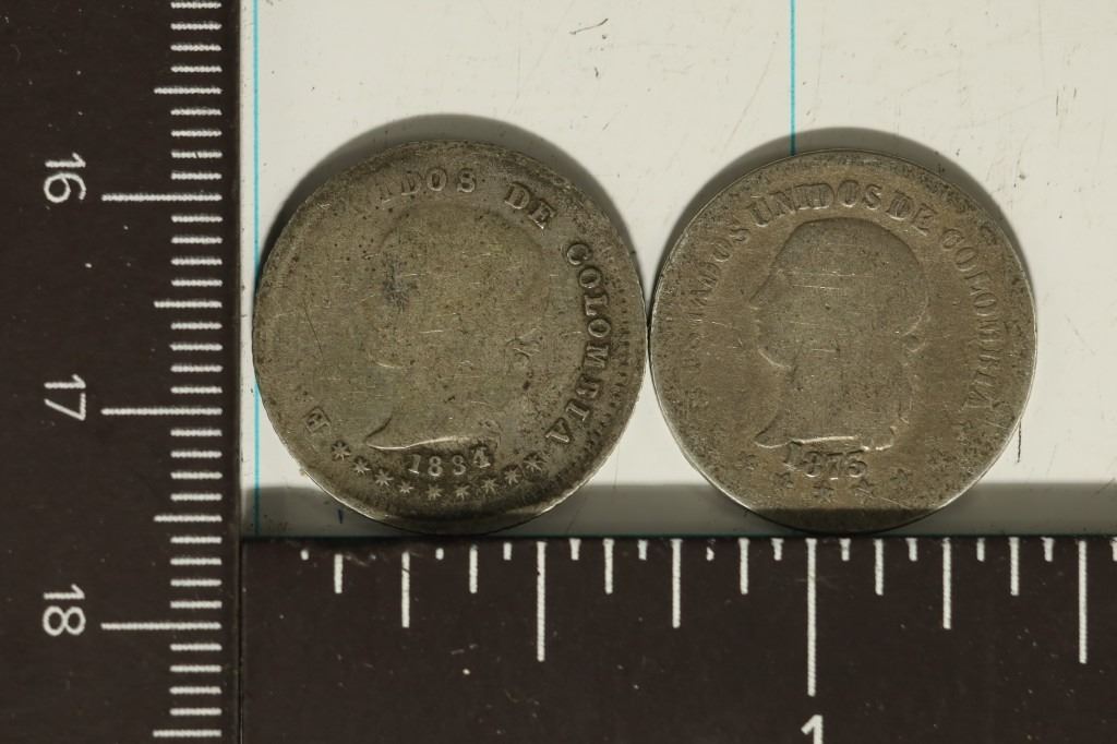 1873 & 1874 COLUMBIA SILVER 10 CENTAVOS .1342 OZ.