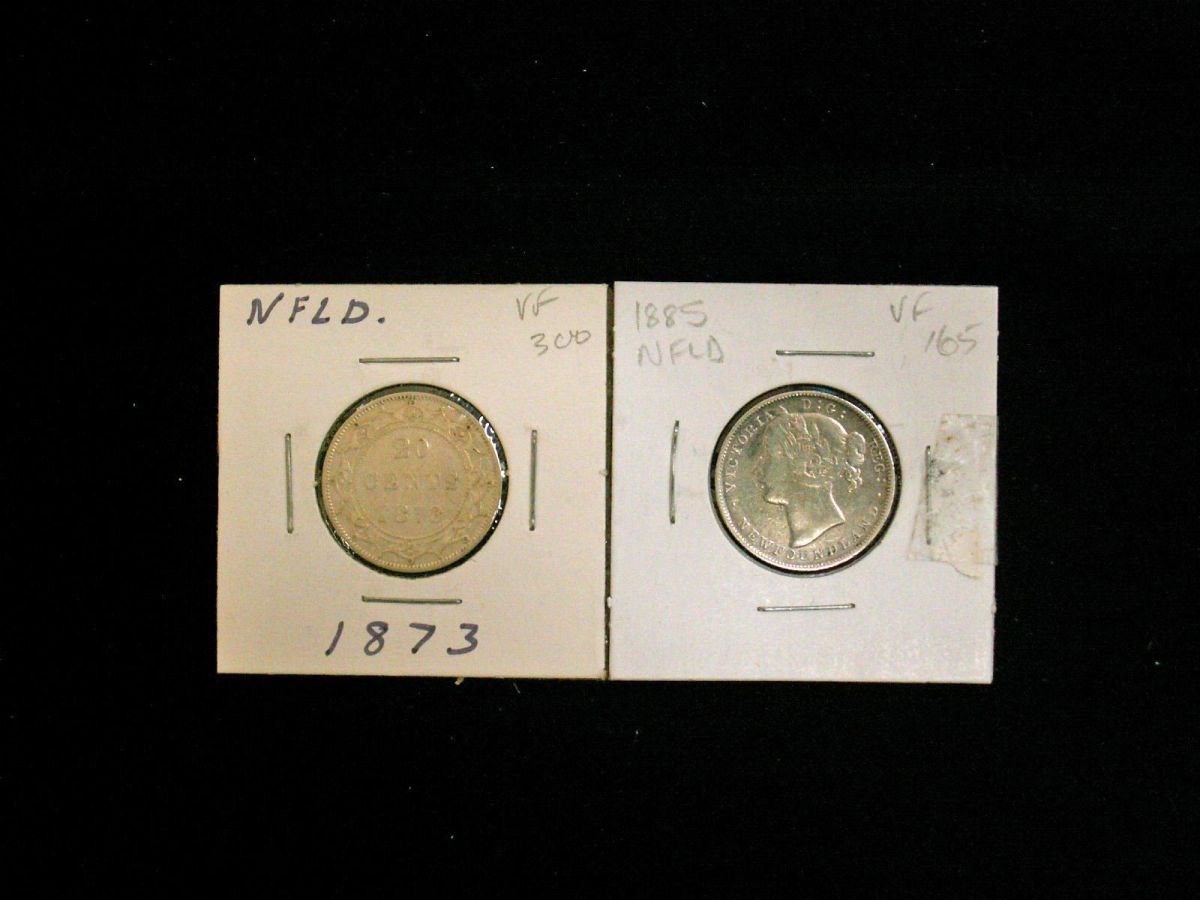 1873 & 1885 Nfld 20¢. Lot of 2 coins F15 to VF.