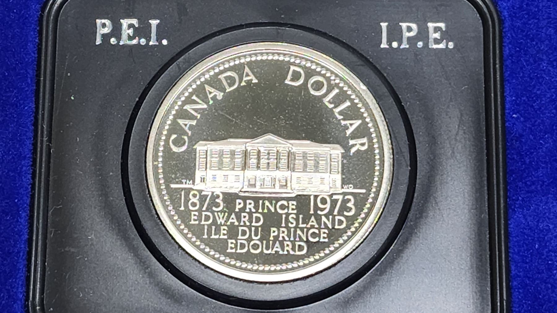 1873-1973 PEI Centennial Canadian silver dollar coin - in clam shell case