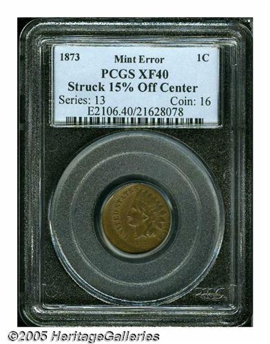 <B>1873<1C> Closed 3 Indian Cent--Struck 15% Off Center--XF40 PCGS.</B></I> A modestly worn example that with OF and the first few letters of AMERICA obliterated by the off-center striking, roughly a 2 o'clock direction.<BR><I>From The Larry Rausch Collection, Part Five.</B></I>