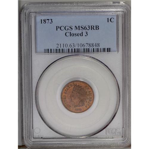 <B>1873<1C> Closed 3 MS63 Red and Brown PCGS.</B></I> Within the wreath on the reverse and in patches on the obverse, chestnut-brown has supplanted the original color. Well struck with some marks.