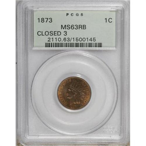 <B>1873 1C Closed 3 MS63 Red and Brown PCGS.</B></I> An attractive Select representative of the earlier Closed 3 logotype, well struck with nearly complete diamonds on the ribbon. The margins show lovely copper-orange coloration, while deeper violet and chocolate hues dominate the centers. Minor scattered marks overall. In a green label holder.<BR><BR><B>Coin Engraver:</B> James B. Longacre<BR><BR><b>Shipping:</b> Coins & Currency (<a target="_blank" href="http://www.heritageauctions.com/common/shipping.php">view shipping information</a>)