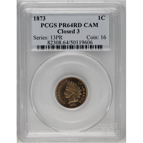 1873 1C Closed 3 PR64 Red Cameo PCGS. A needle-sharp n 1873[1C] Closed 3 PR64 Red Cameo PCGS.