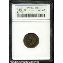 1873 1C Closed 3 PR64 Red and Brown ANACS. Blazing, reflective medium orange shines through mottled crimson-brown patina on the obverse, while the reverse shows a more subdued dappled tan-orange color. Free of marks and clean save for minor spotting on the reverse. Important notice: Heritage usually auctions material at the rate of 200-250 lots per hour. On some occasions eBay Live bid software or the Internet may not be able to keep up with the pace of the auction. We recommend placing a realistic absentee bid now as insurance to avoid disappointment. Occasionally the auctioneer may eliminate or reject an eBay Live bid, and the auctioneer may also reopen a lot after the close of the eBay live bidding (usually because we missed an audience bid), and may reject your bid even if it shows you as the winning bidder. By bidding via eBay Live, you agree that Heritage may award the lot to another bidder at its sole discretion under the circumstances described above or any other reasonable circumstances. Also please note that all Heritage lots purchased through eBay Live carry a 20% Buyer's Premium. Please make sure you read the Terms and Conditions before you bid.