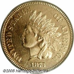 <B>1873 1C Closed 3 PR65 Red PCGS.</B></I> Of the 1,100 proofs struck of this date, all have a closed 3 in the date. This is a deeply reflective coin--the obverse die appears to have been overzealously polished as small portions of the lower feathers are missing, and the area around eye of the Indian shows die polishing rather than frost. Pleasing mint red color covers both sides with no mentionable surface distractions. Population: 28 in 65, 2 finer (2/05).