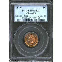 1873 1C Closed 3 PR65 Red PCGS. One of 1,100 proofs struck in this year, only Closed 3 coins were pr