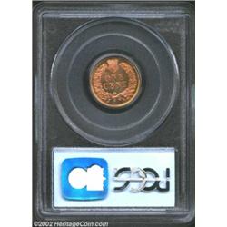 1873 1C Closed 3 PR65 Red PCGS. One of 1,100 proofs struck in this year, only Closed 3 coins were produced in the proof format. This is a scintillating example that has bright orange-red coloration over both sides and just a bit more cherry-red on the reverse. Very deeply mirrored and showing the first feather disconnected from the headdress from excessive die polishing (as also seen on the Gorrell coin), which explains the exceptionally bright reflective finish on this coin. Essentially a defect-free example.From the "Newmismatist" Collection; the All-Time #1 PCGS Registry Set. Important notice: We expect to be auctioning lots at the rate of 200-250 per hour. Sometimes eBay Premier live bid software cannot keep up with that pace, so we strongly recommend that you place a realistic proxy bid now as insurance to avoid disappointment. Also please note that all Heritage/CAA lots purchased through eBay Premier carry a 20% Buyer's Premium. Please make sure you read the Terms and Conditions.