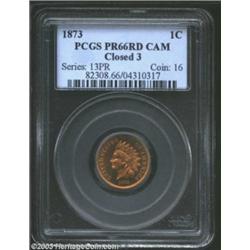 1873 1C Closed 3 PR66 Red, Cameo PCGS. Eagle Eye Photo Seal. Closed 3, as are all proof Cents of thi