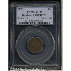 <B>1873<1C> Doubled LIBERTY AU55 PCGS.</B></I> FS-009, Snow-1, Breen-1986. DDO 1-O-V. LIBERTY is widely die doubled, as is Liberty's eye and mouth and the spines in the headdress. Mahogany-brown and golden-brown colors blend throughout this sharply defined and problem-free example. Among the most popular die varieties of the Indian Cent series, and very scarce in higher circulated grades. Population: 10 in 55, 18 finer (3/04). <BR><BR><B>Important notice:</B> Heritage usually auctions material at the rate of 200-250 lots per hour. On some occasions eBay Live bid software or the Internet may not be able to keep up with the pace of the auction. We recommend placing a realistic absentee bid now as insurance to avoid disappointment. Occasionally the auctioneer may eliminate or reject an eBay Live bid, and the auctioneer may also reopen a lot after the close of the eBay live bidding (usually because we missed an audience bid), and may reject your bid even if it shows you as the winning bidder. By bidding via eBay Live, you agree that Heritage may award the lot to another bidder at its sole discretion under the circumstances described above or any other reasonable circumstances. Since eBay bids are not shown to us until we open the lot on the floor, we treat those bids just like floor bids. In most cases the floor responds before the eBay bid is presented to us, due to Internet lag time, so for consistency we have made it a policy that floor bids are always considered first over tie eBay live bids. Also please note that all Heritage lots purchased through eBay Live carry a 20% Buyer's Premium. Please make sure you read the Terms and Conditions before you bid. </span></font></tr></table></td></tr></table>