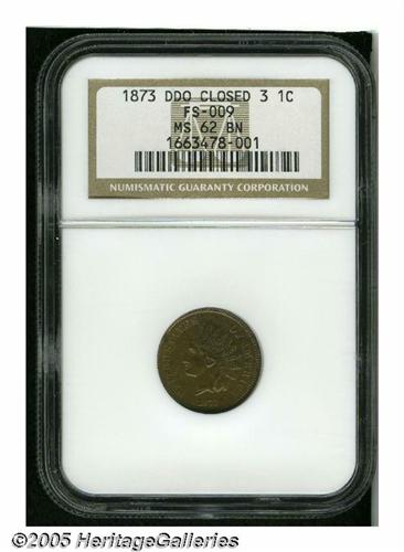 1873 1C Doubled LIBERTY MS62 Brown NGC. FS-009, S