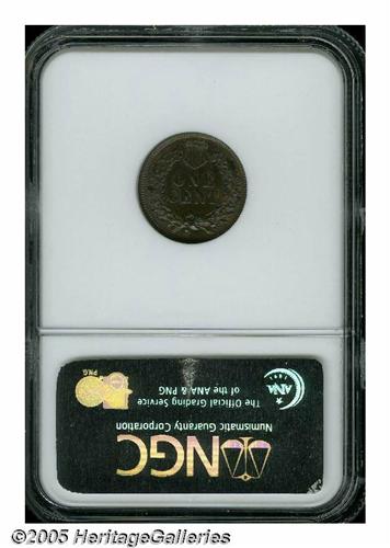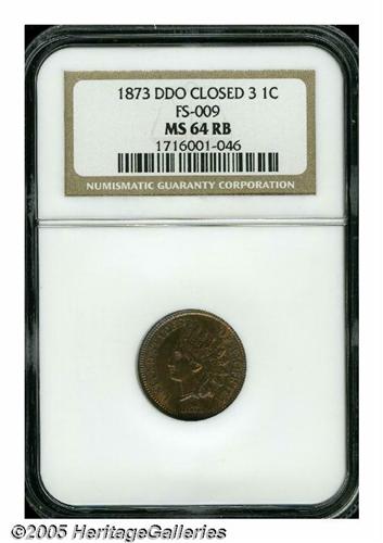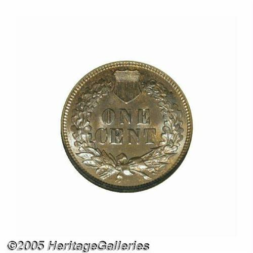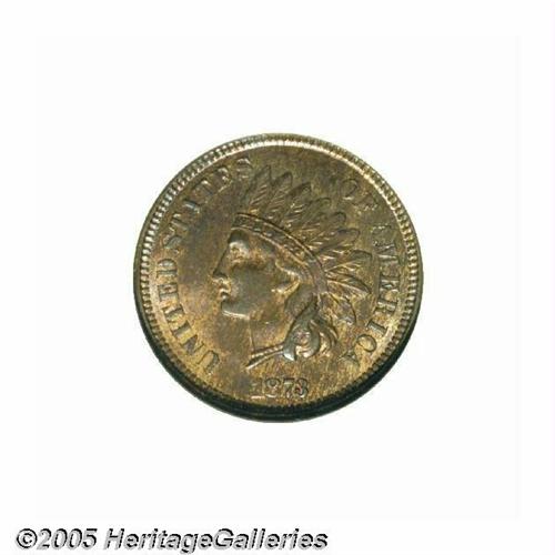 <B>1873<1C> Doubled LIBERTY MS64 Red and Brown NGC.</B></I> FS-009, Snow-1. Discovered in 1957, this error is widely recognized as the "Chief" of the Indian Cent series. Snow (1992) estimates that only 50 examples are extant in all grades, and he lists a Condition Census that ranges in grade from AU58 through MS64. A solidly graded near-Gem the surfaces are expectantly clean for the assigned grade with only a couple of mentionable abrasions in the left obverse field. Mottled tan-blue toning in the centers yields to blushes of golden-orange luster at the borders. Both major grading services have seen just 12 coins at the MS64 Red and Brown grade level, and there are only six certified finer with this color designation (6/05).<BR> Doubling on all features of Liberty's portrait is the diagnostic feature of this prized error. The doubling is most readily evident on Liberty's eyes, the feather stems, and, especially, the letters in LIBERTY.