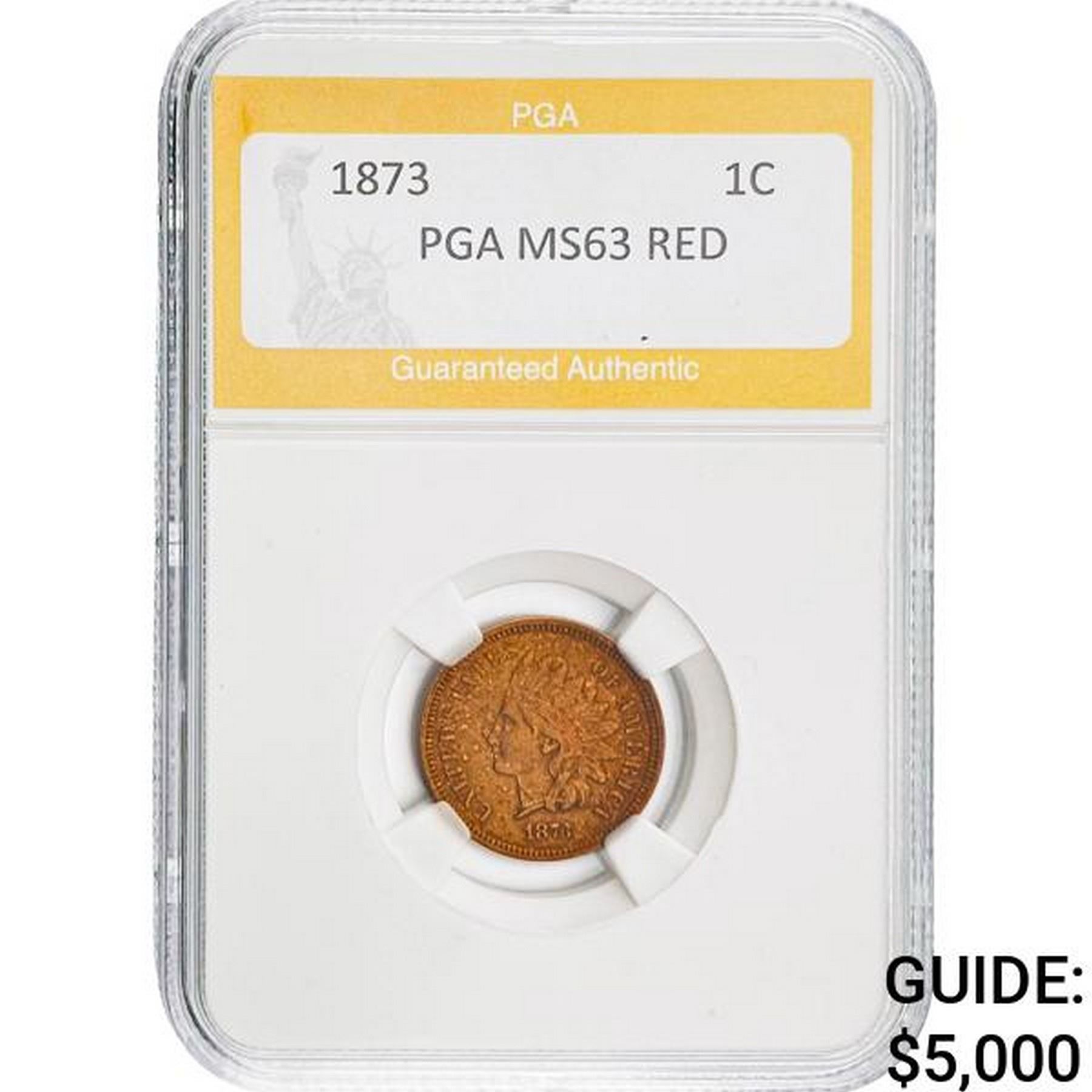 1873 1C Indian Head Cent PGA MS63 RED