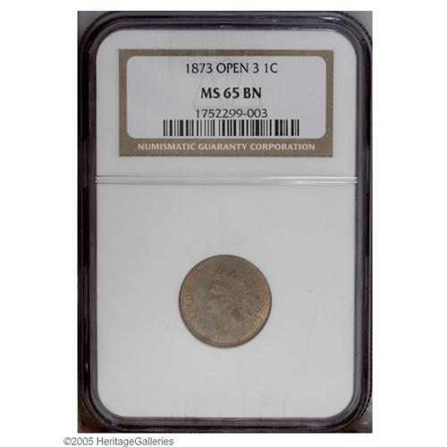 1873 1C Open 3 MS65 Brown NGC. The more available of t 1873[1C] Open 3 MS65 Brown NGC.