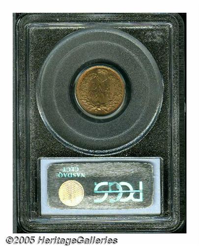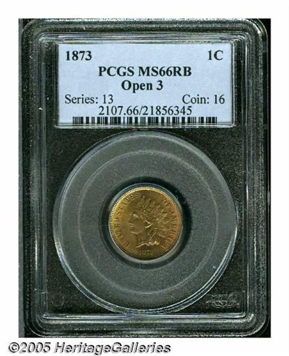 <B>1873<1C> Open 3 MS66 Red and Brown PCGS.</B></I> Deep orange-red and sea-green colors alternate across this intricately struck and highly lustrous piece. Pristine except for a faint pinscratch beneath the Indian's chin.