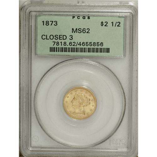 1873 $2 1/2 Closed 3 MS62 PCGS. Well-defined overall w