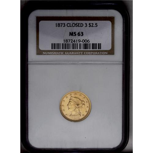 1873 $2 1/2 Closed 3 MS63 NGC. One of 55,200 Closed 3 1873