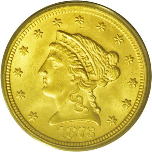 1873 $2 1/2 Closed 3 MS64 PCGS. A lustrous, reddish-go