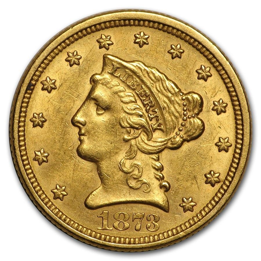 One 1873 $2 1/2 Liberty Head Quarter Eagle Gold Coin.