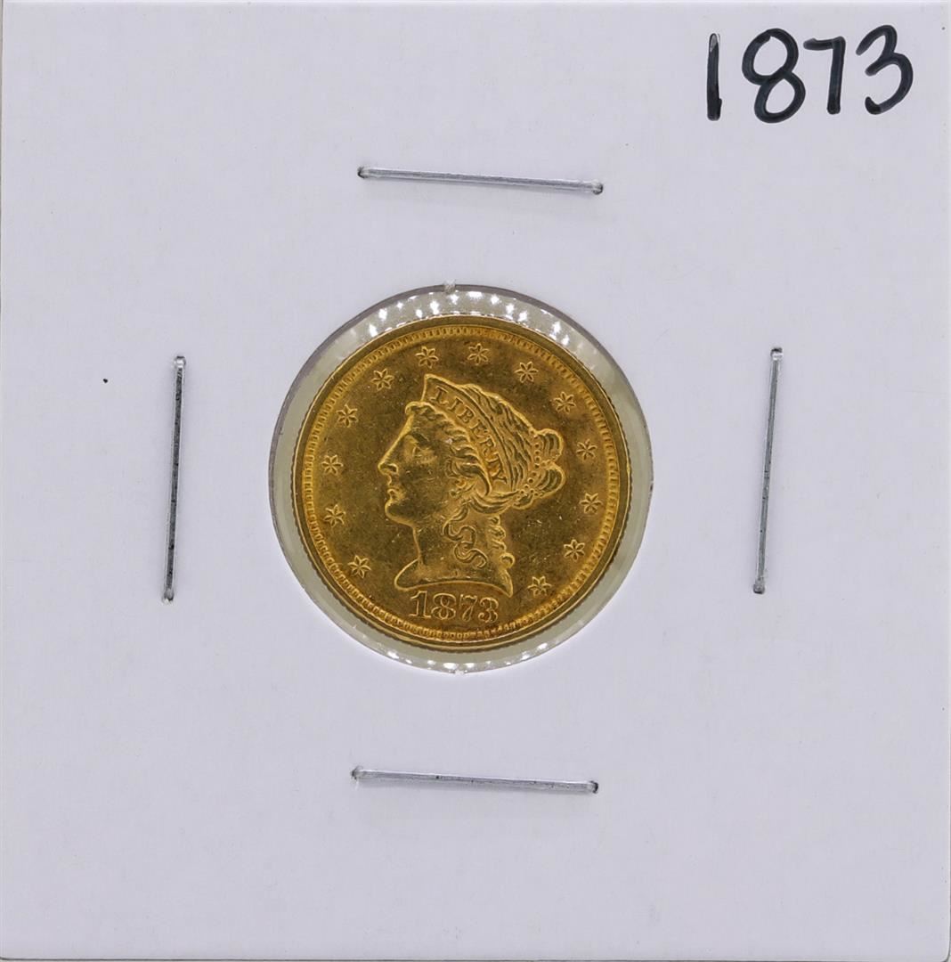 One 1873 $2 1/2 Liberty Head Quarter Eagle Gold Coin.