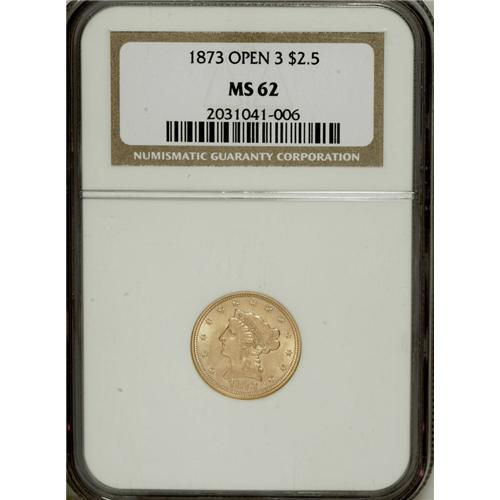 1873 $2 1/2 Open 3 MS62 NGC. NGC Census: (145/108)