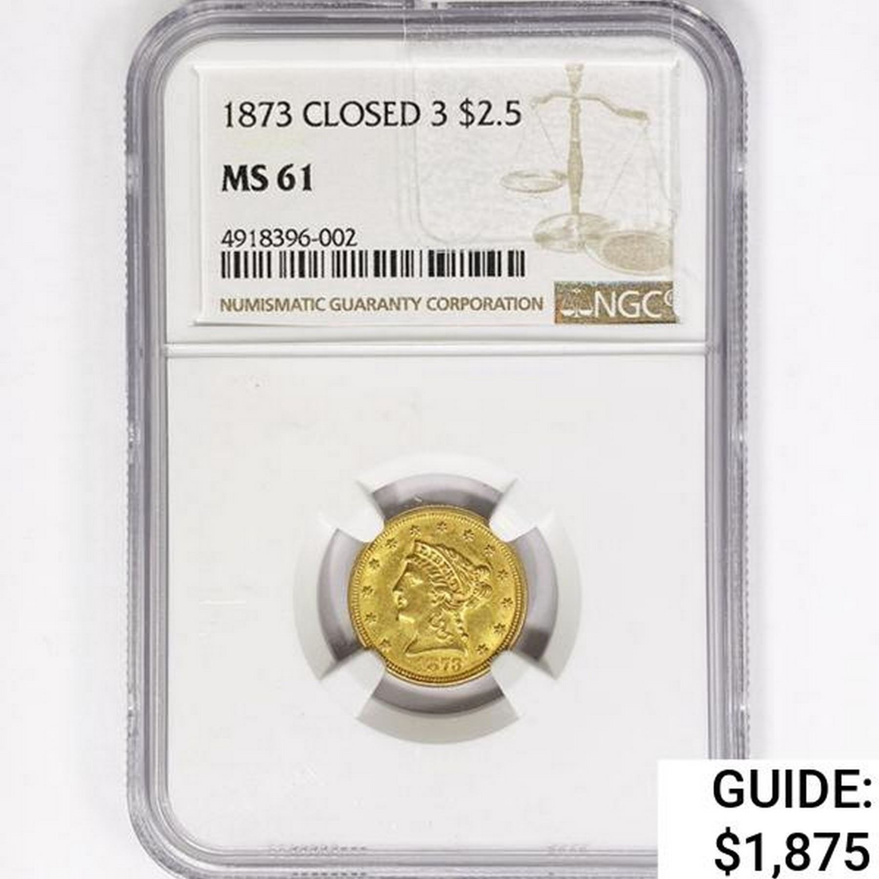 1873 $2.50 Gold Quarter Eagle NGC MS61 Closed 3