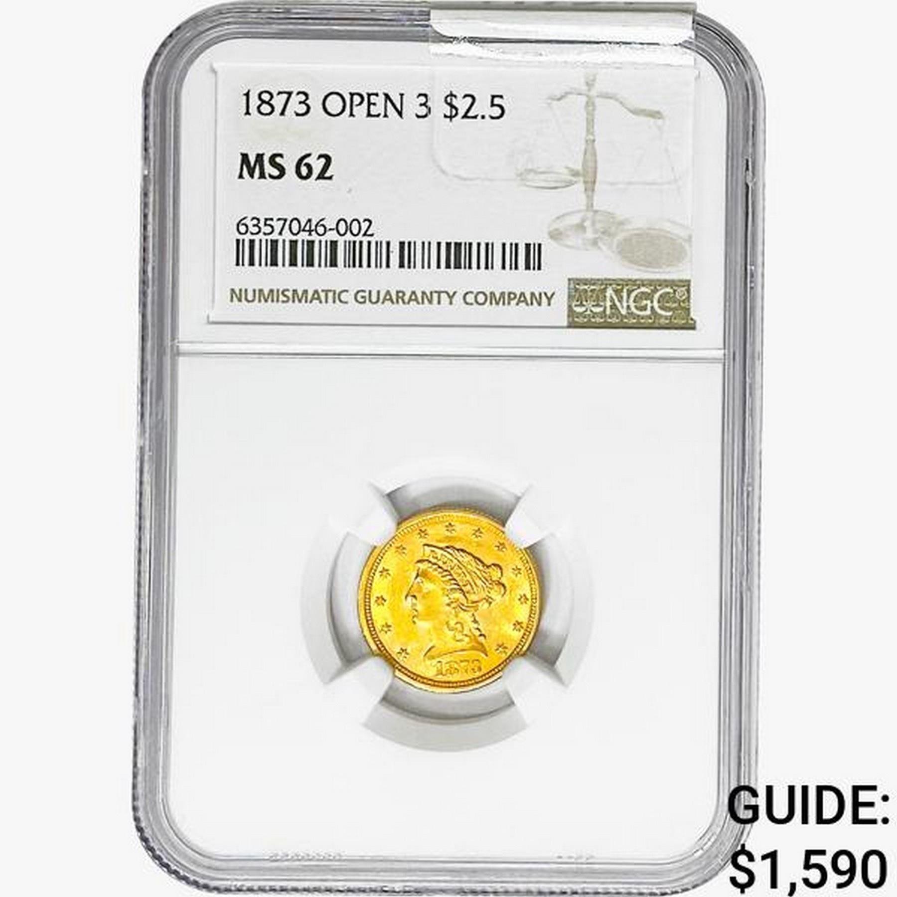 1873 $2.50 Gold Quarter Eagle NGC MS62 Open 3