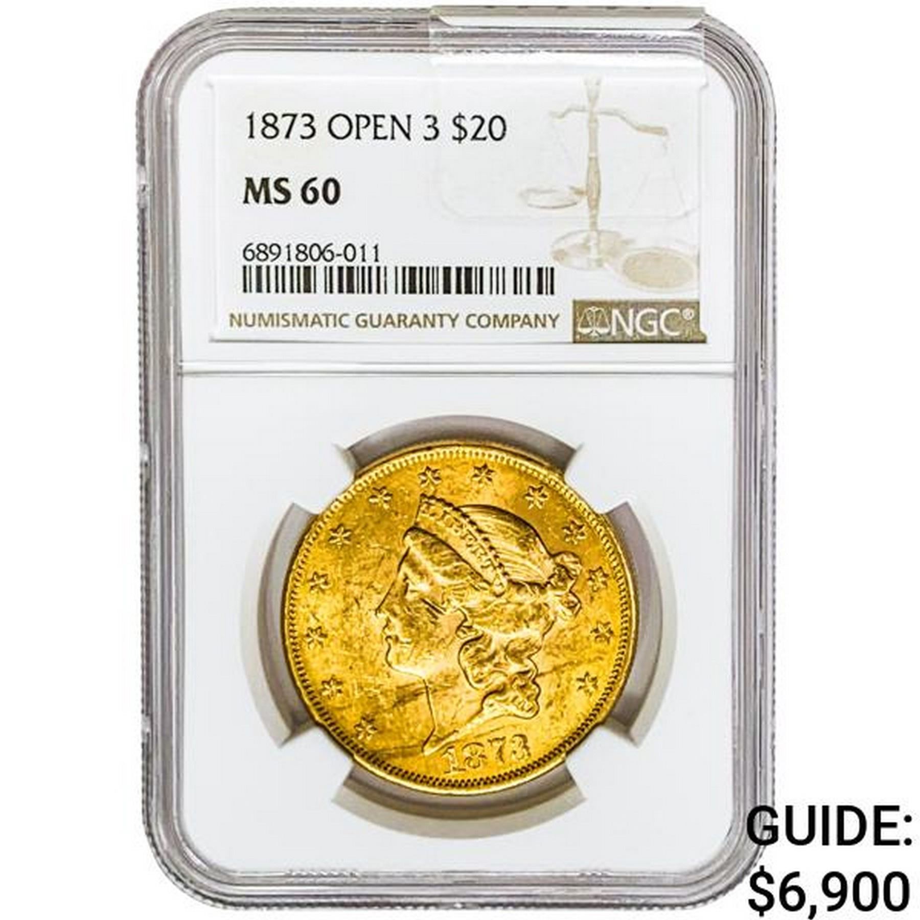 1873 $20 Gold Double Eagle NGC MS60 Open 3
