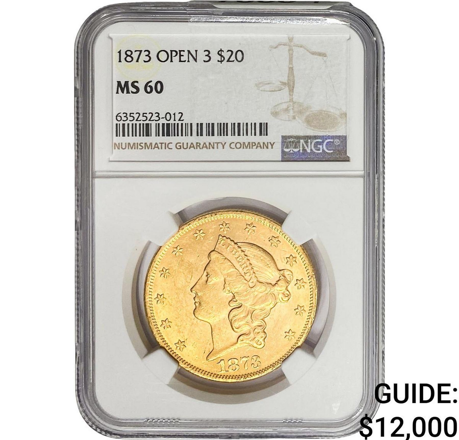 1873 $20 Gold Double Eagle NGC MS60