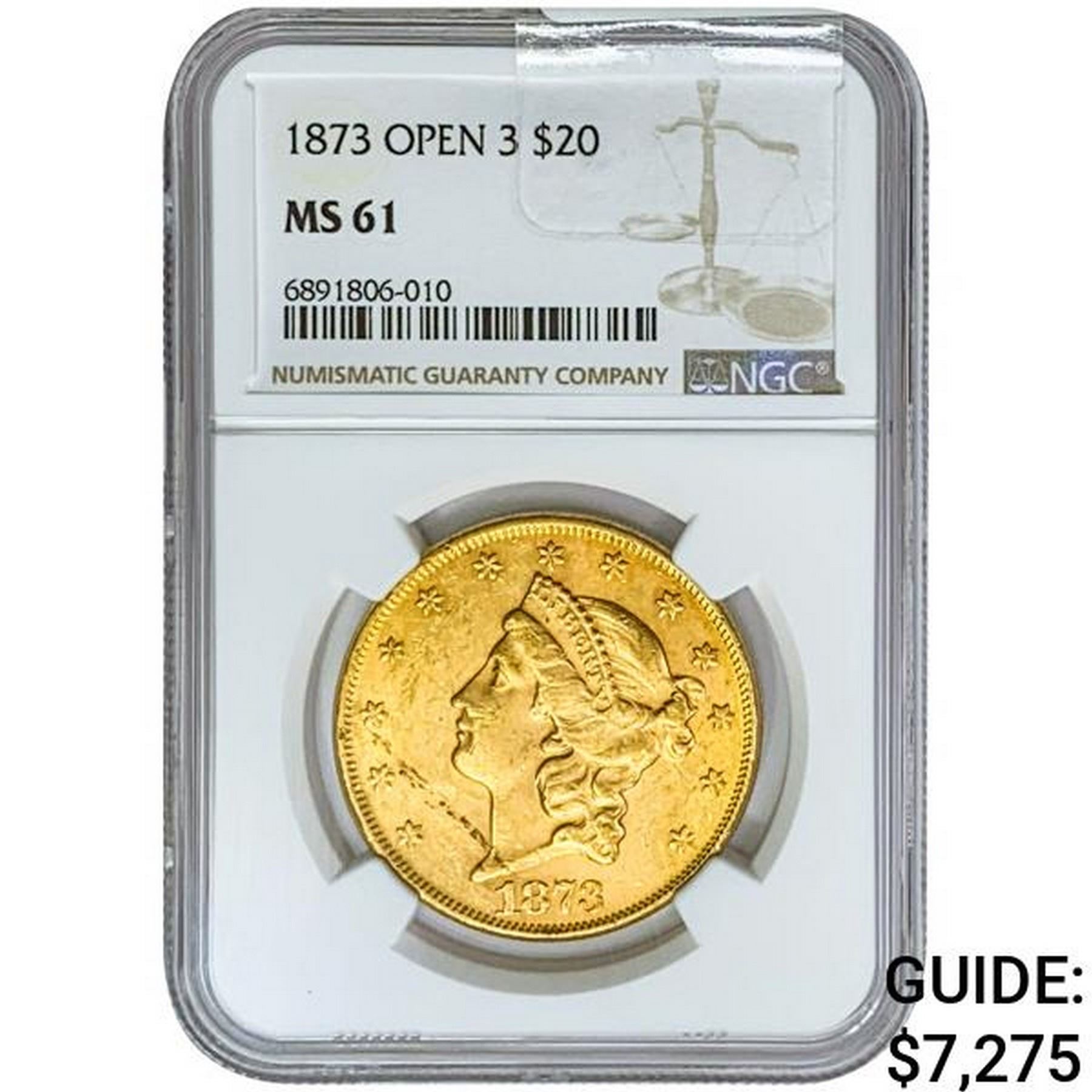 1873 $20 Gold Double Eagle NGC MS61 Open 3
