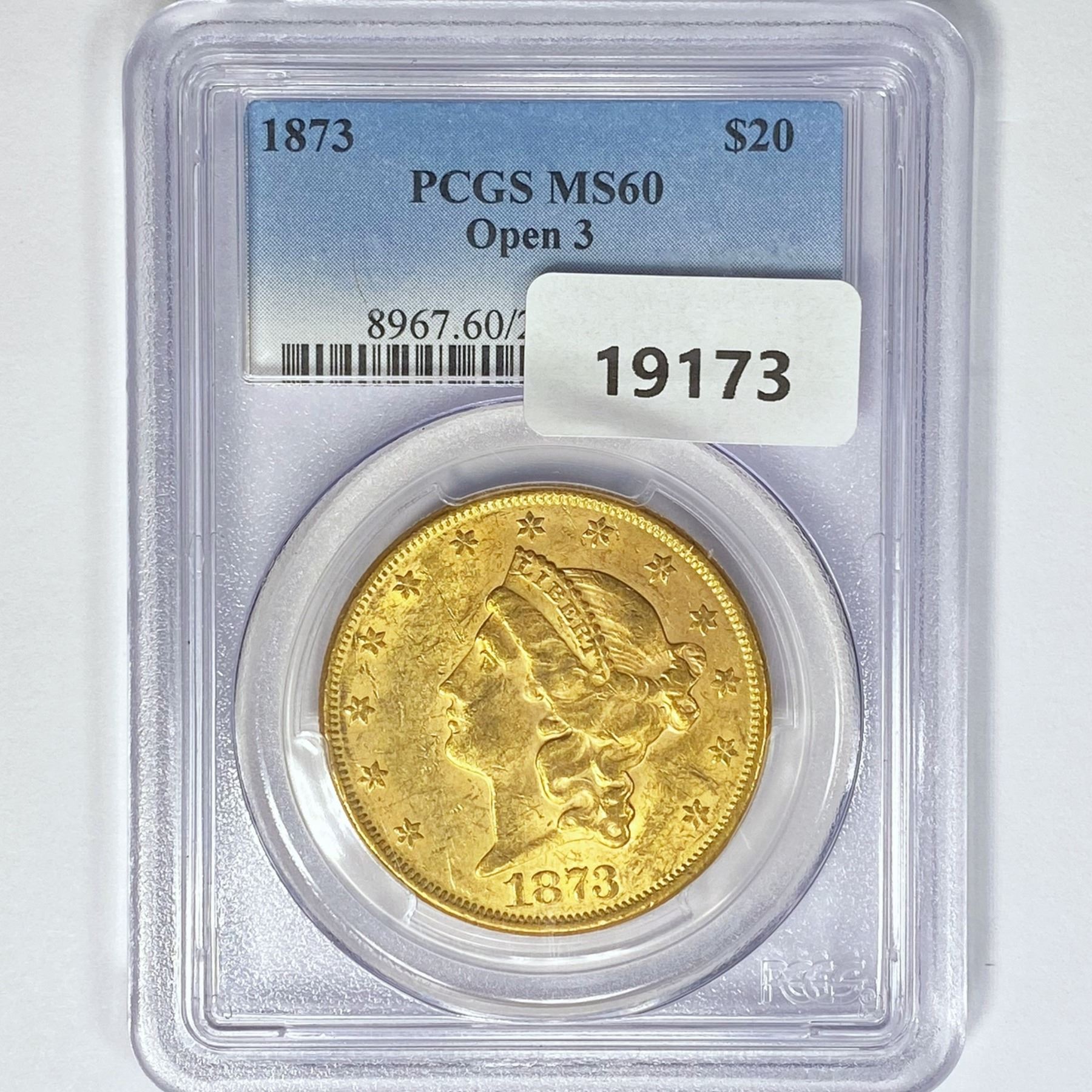 1873 $20 Gold Double Eagle PCGS MS60 Open 3