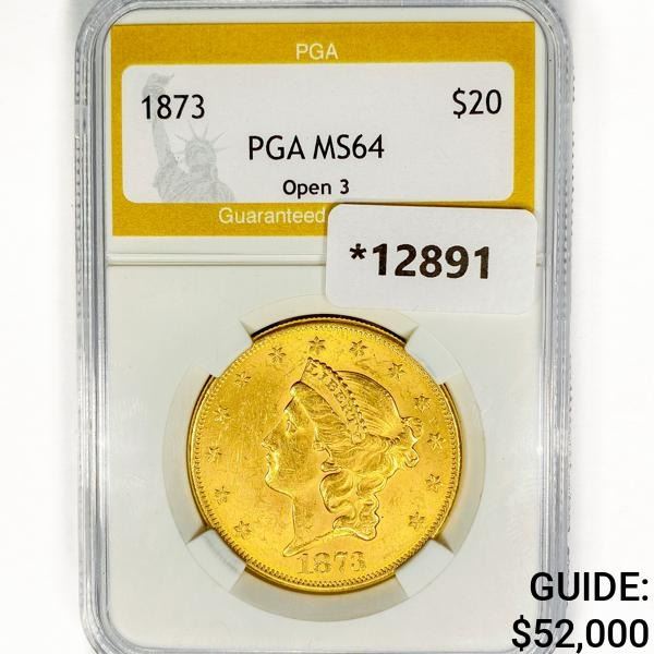 1873 $20 Gold Double Eagle PGA MS64 Open 3