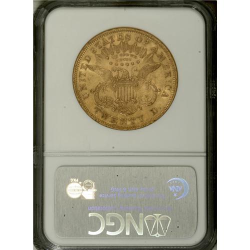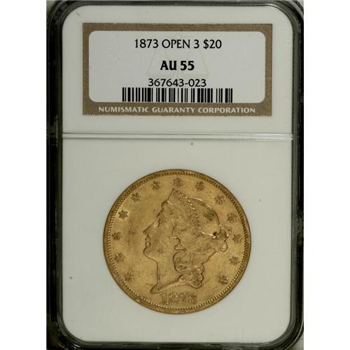 1873 $20 Open 3 AU55 NGC. NGC Census: (379/4863).