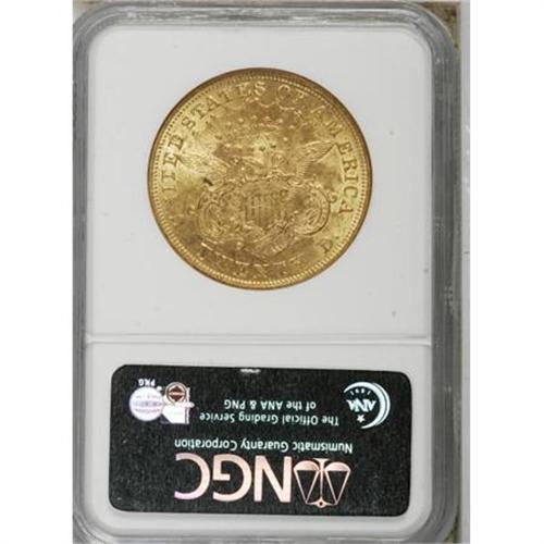 <B>1873 $20 Open 3 AU58 NGC.</B></I> NGC Census: (1852/3209). PCGS Population (581/2355). Numismedia Wsl. Price for NGC/PCGS coin in AU58: $740. (#8967)<BR><BR><B>Coin Engraver:</B> James B. Longacre<BR><BR><b>Shipping:</b> Coins & Currency (<a target="_blank" href="http://www.heritageauctions.com/common/shipping.php">view shipping information</a>)